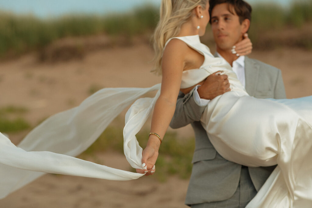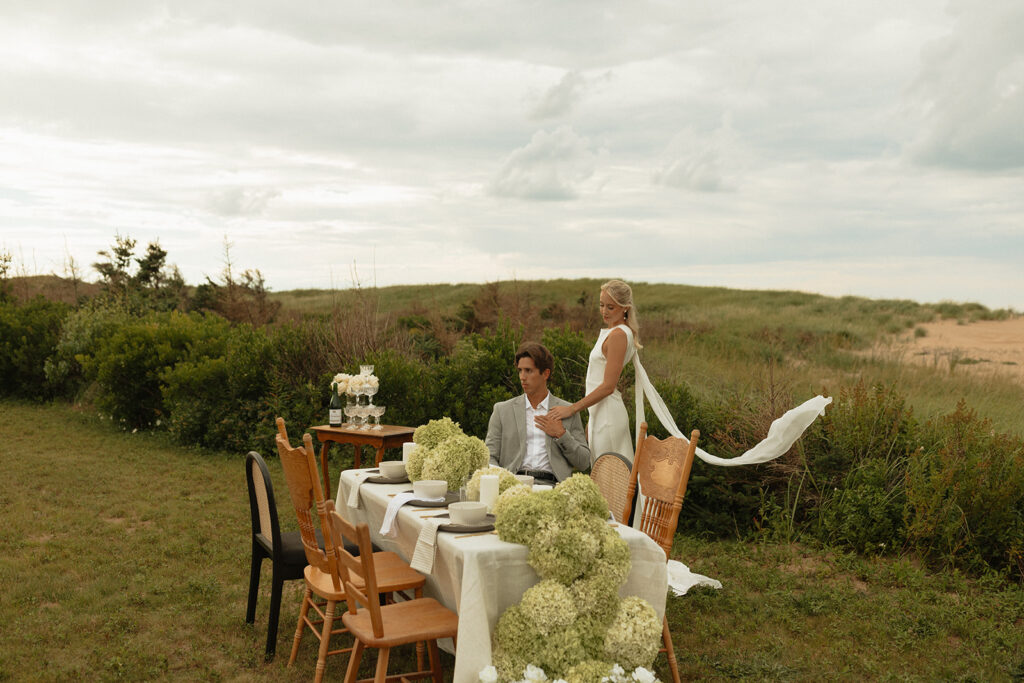 This beach elopement was the dreamiest setup last August with a coastal vibe including PEI oysters, a hydrangea cascade & the most beautiful gown from Kind Bridal in Halifax, Nova Scotia.